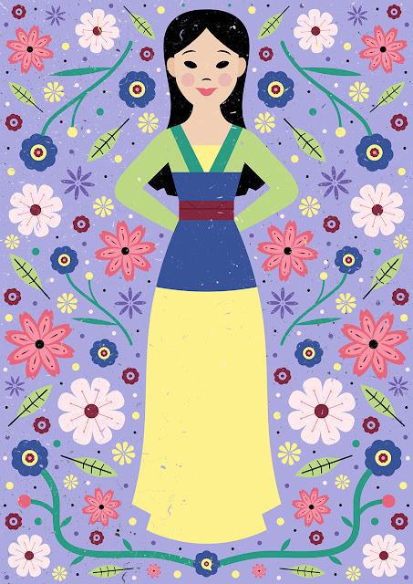 Today's Princess is Rapunzel! I felt really inspired by Mary Blair when I was illustrating this and I love the way it turned out. If you're not familiar with the name then I'm sure you'd recognise the work she did for Disney! She produced such a lot of gorgeous concept art and even contributed to the design of the 'It's a Small World' ride.
