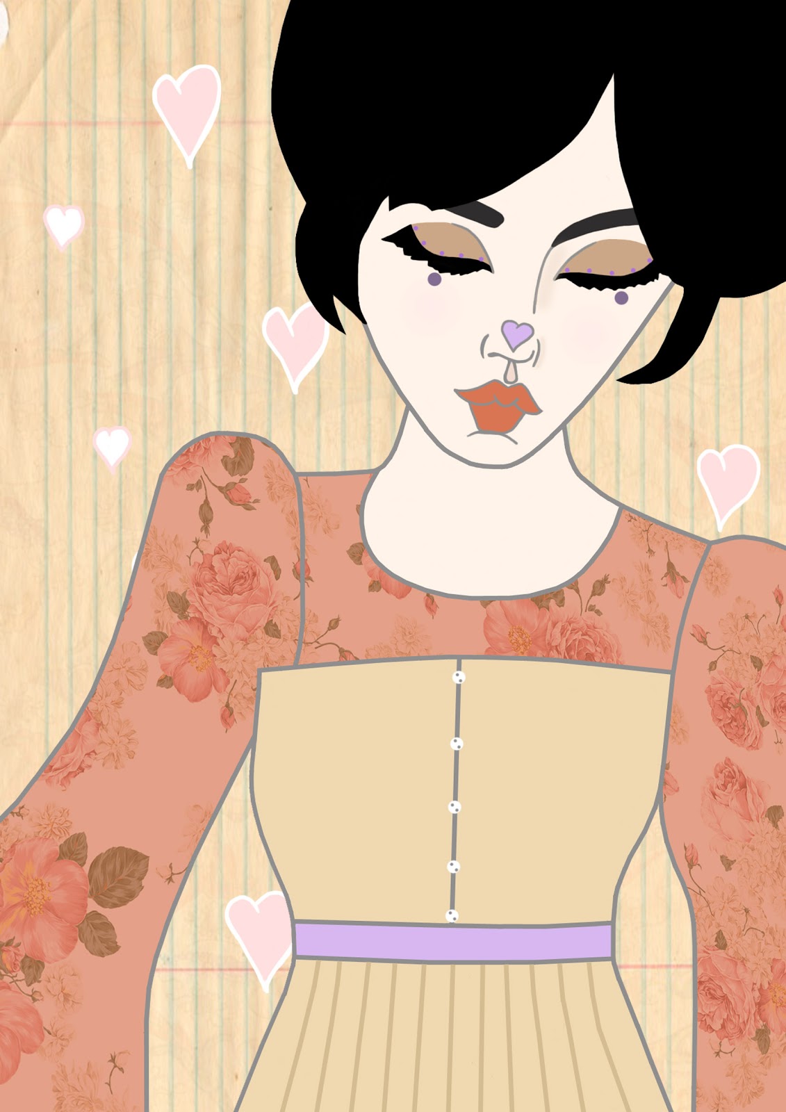 This is just something simple based on a photo I found a little while ago and thought it would make a cute illustration. I really loved the floaty arms of the dress. I added a few little jewels around the eyes as this is a trend I've seen on a couple of blogs lately, and I actually really like it.